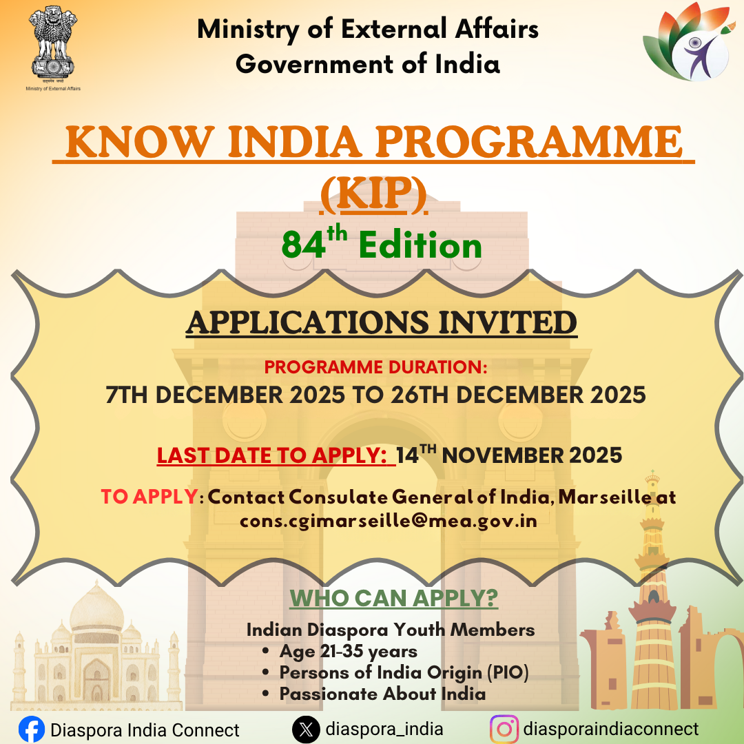 The 84th edition of the KIP is to be held fromDecember 07-26, 2025. Last date for applications to be made for the 84th KIP is 14 November 2025.